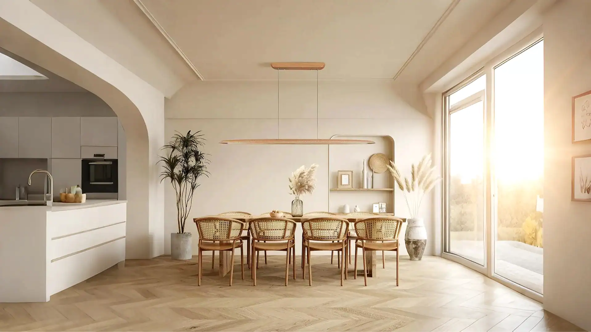Modern Dimmable Natural Wood Linear Chandelier for Dining Room